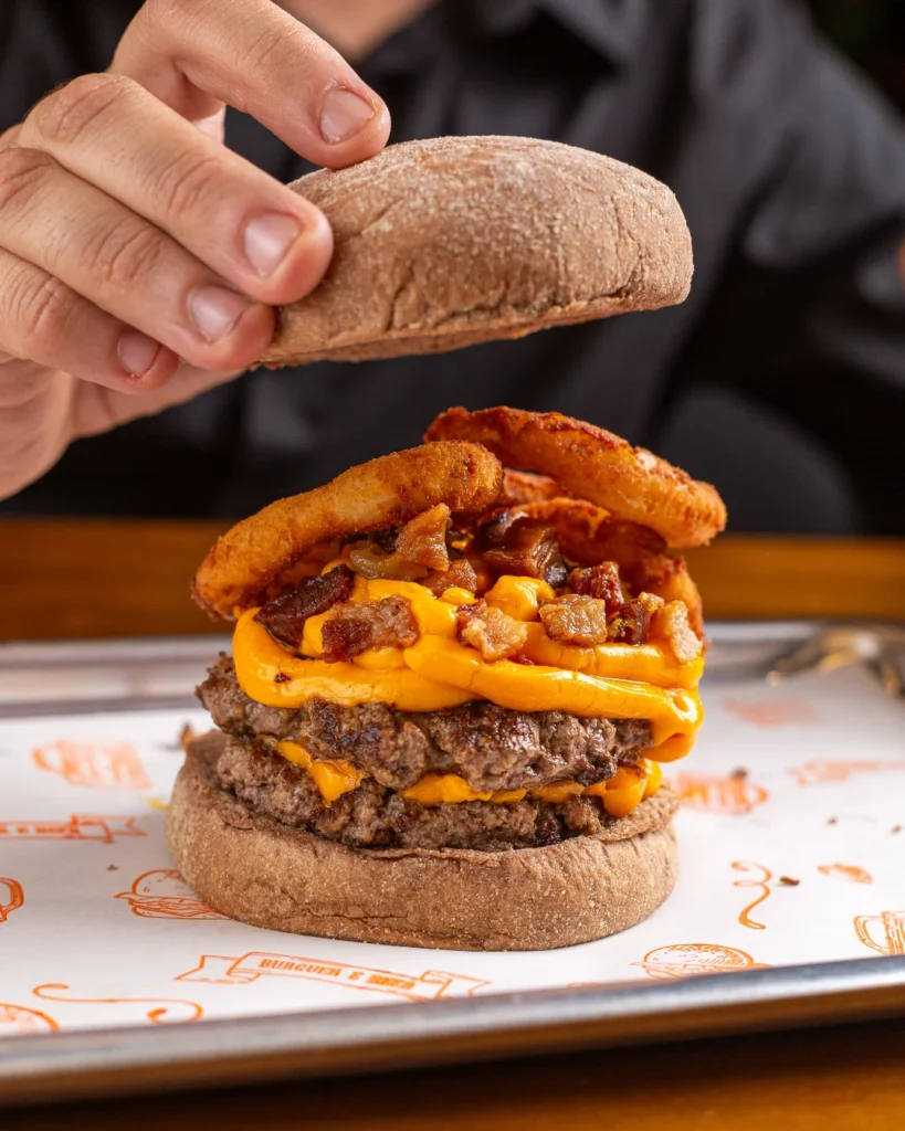 O ambiente é descontraído e acolhedor, com decoração inspirada em oficinas e garagens. A casa se destaca pela qualidade da carne e pelo cuidado em cada detalhe, desde o preparo até as embalagens. No cardápio, o Brooklyn é um dos carros-chefe: leva carne Angus de 160g, cebola caramelizada, queijo, tomate e bacon. A combinação equilibra sabores marcantes com ingredientes frescos.