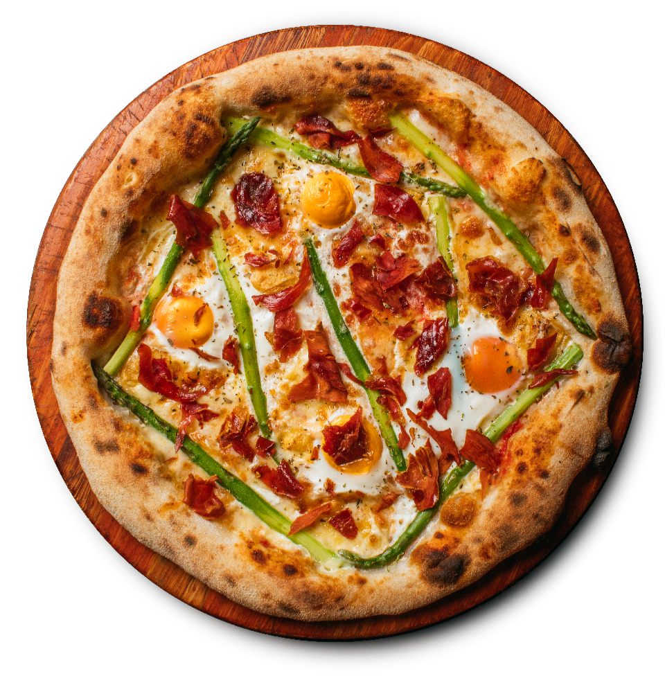 A Pizza Carbonara, preparada com molho bechamel cremoso, pancetta crocante, grana padano e ovo mole no centro, é uma explosão de sabores e texturas que conquista até os paladares mais exigentes. A Portuga da casa leva ovo com gema mole, presunto parma tostado e molho bechamel, demonstrando a atenção aos mínimos detalhes.